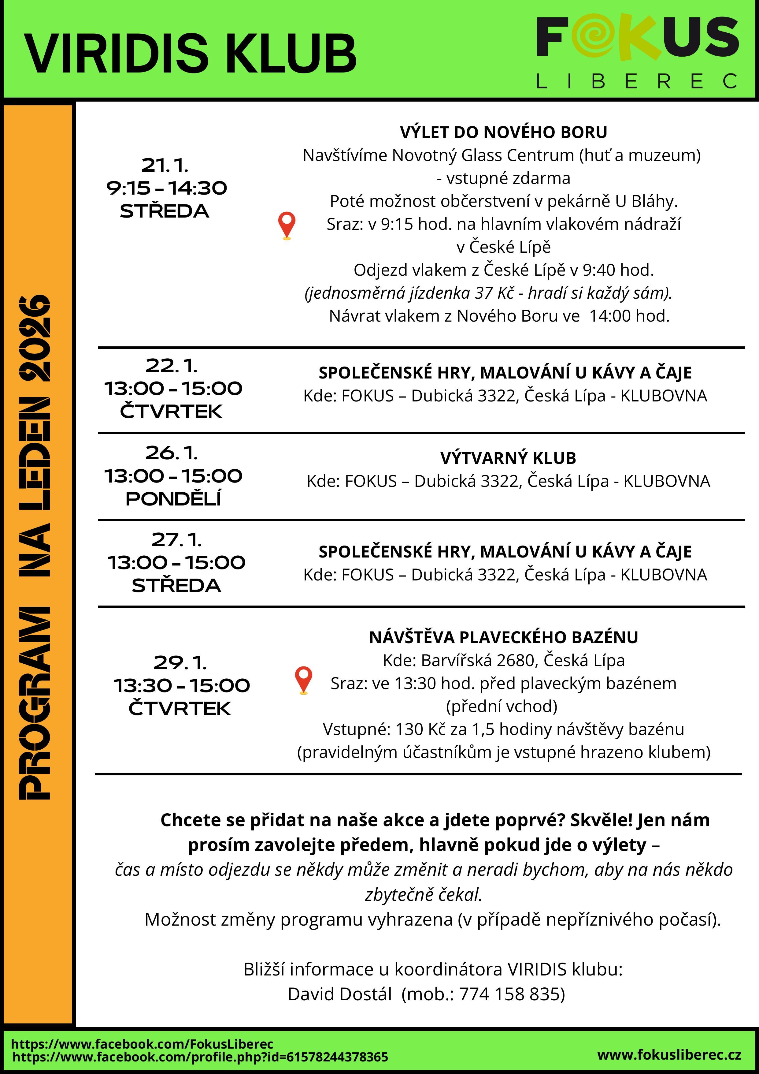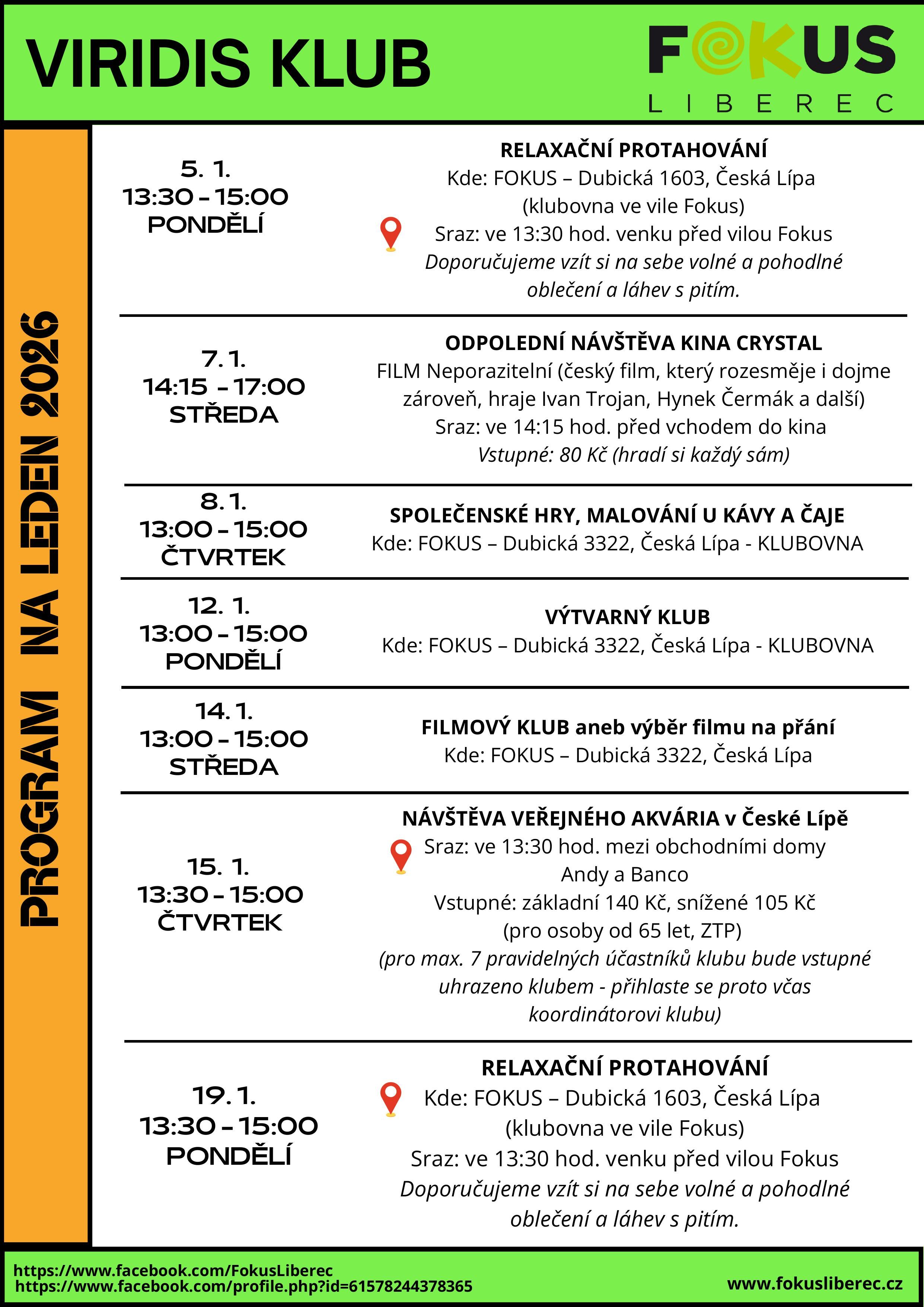 Program VIRIDIS klubu na měsíc leden 2026