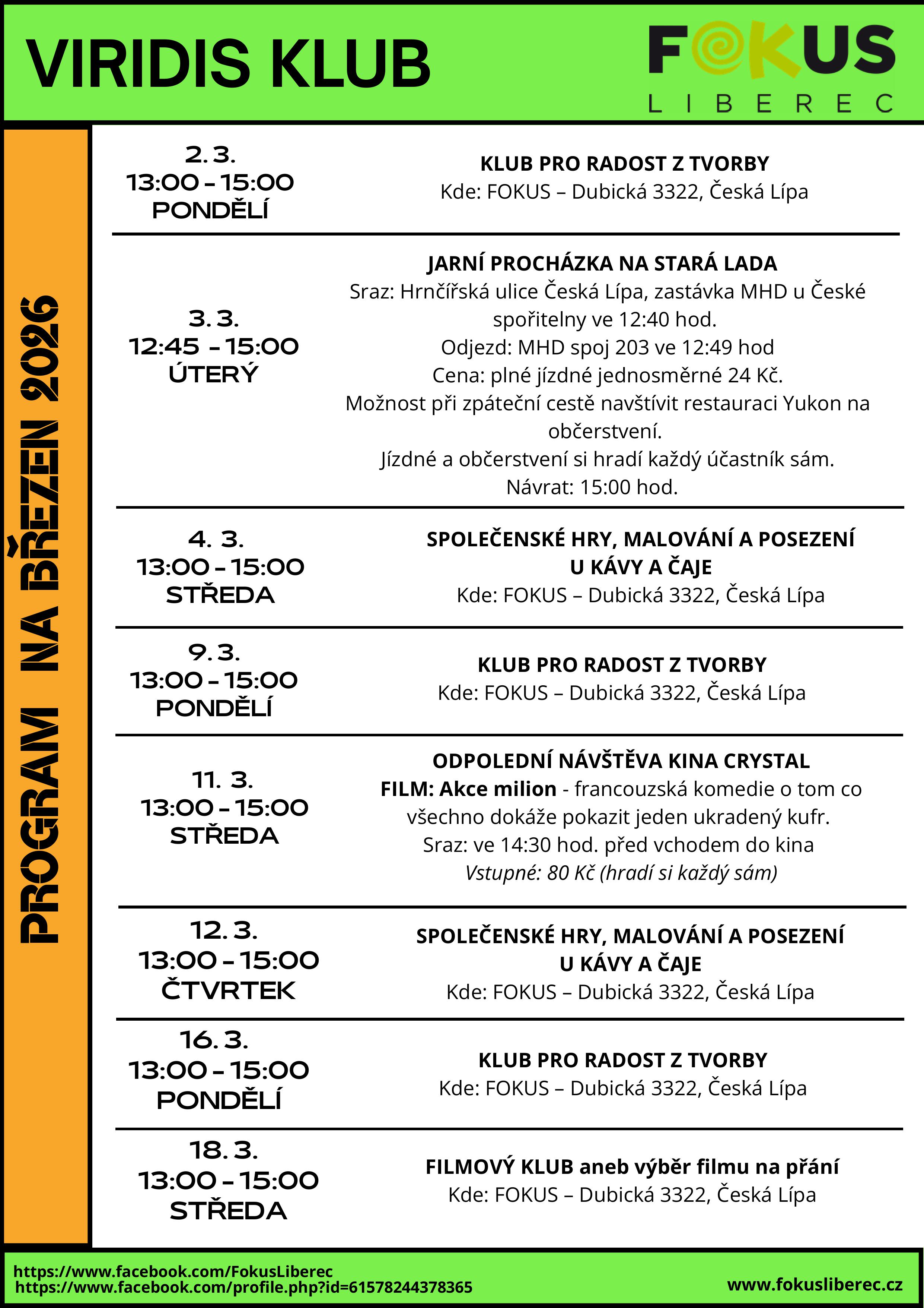 KLUB VIRIDIS ČESKÁ LÍPA BŘEZEN